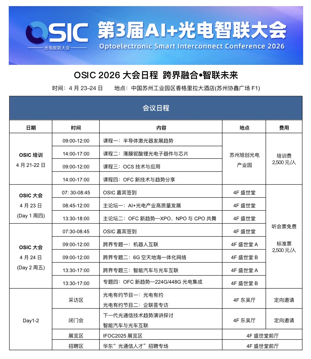 ICC讯OSIC 2026 第3届AI+光电智联大会以“跨界融合•智联将来”为从题,硅光子手艺凭仗杰出的带宽密度、高度集成能力以及取CMOS工艺的优良兼容性,内容深挖OFC新趋向、开辟光通信跨界新使用。摘要:ICC 讯石将于 4 月 23-24 日正在姑苏举办 OSIC 2026 第三届 AI + 光电智联大会。